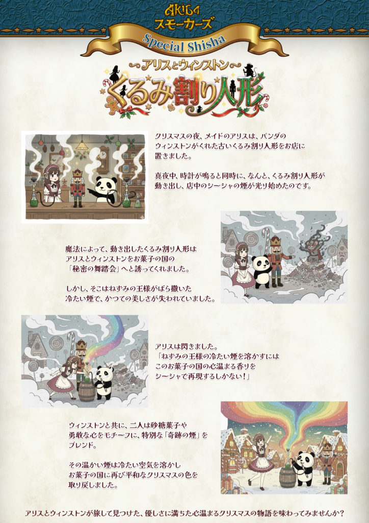 12月のAKIBAスモーカーズは、メイドのアリスとパンダのウィンストンのクリスマスの思い出を煙にしました。